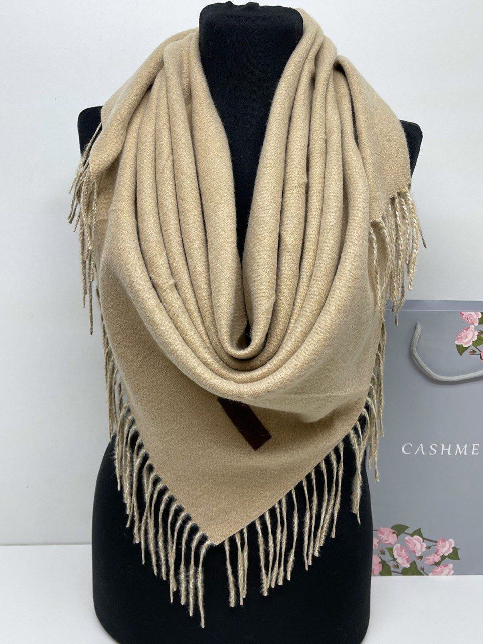 Теплый двусторонний платок из кашемира — стильный аксессуар для вашего неотразимого образа. Размер изделия составляет 110*110, что позволяет использовать его как шарф или головной убор.