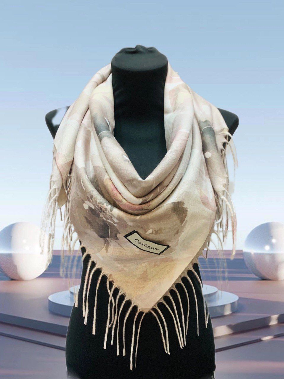 Теплый платок из кашемира — стильный аксессуар для вашего неотразимого образа. Размер изделия составляет 100*100, что позволяет использовать его как шарф или головной убор.