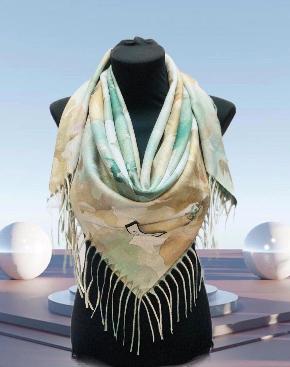 Теплый платок из кашемира — стильный аксессуар для вашего неотразимого образа. Размер изделия составляет 100*100, что позволяет использовать его как шарф или головной убор.