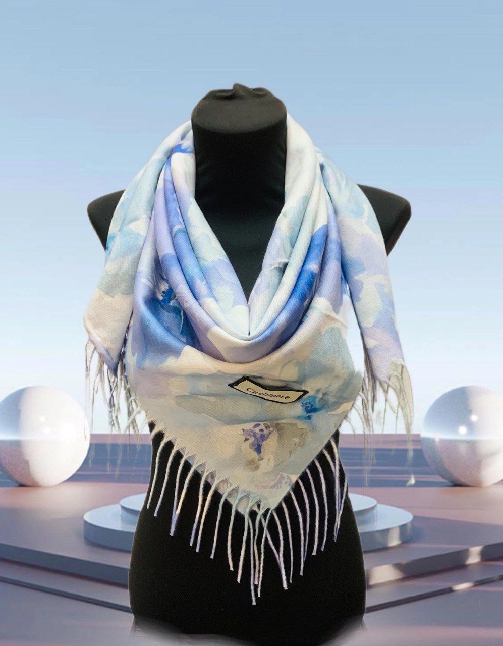 Теплый платок из кашемира — стильный аксессуар для вашего неотразимого образа. Размер изделия составляет 100*100, что позволяет использовать его как шарф или головной убор.