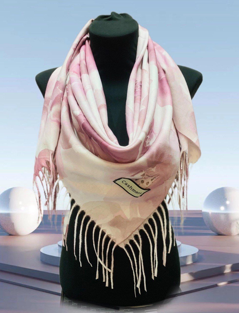 Теплый платок из кашемира — стильный аксессуар для вашего неотразимого образа. Размер изделия составляет 100*100, что позволяет использовать его как шарф или головной убор.