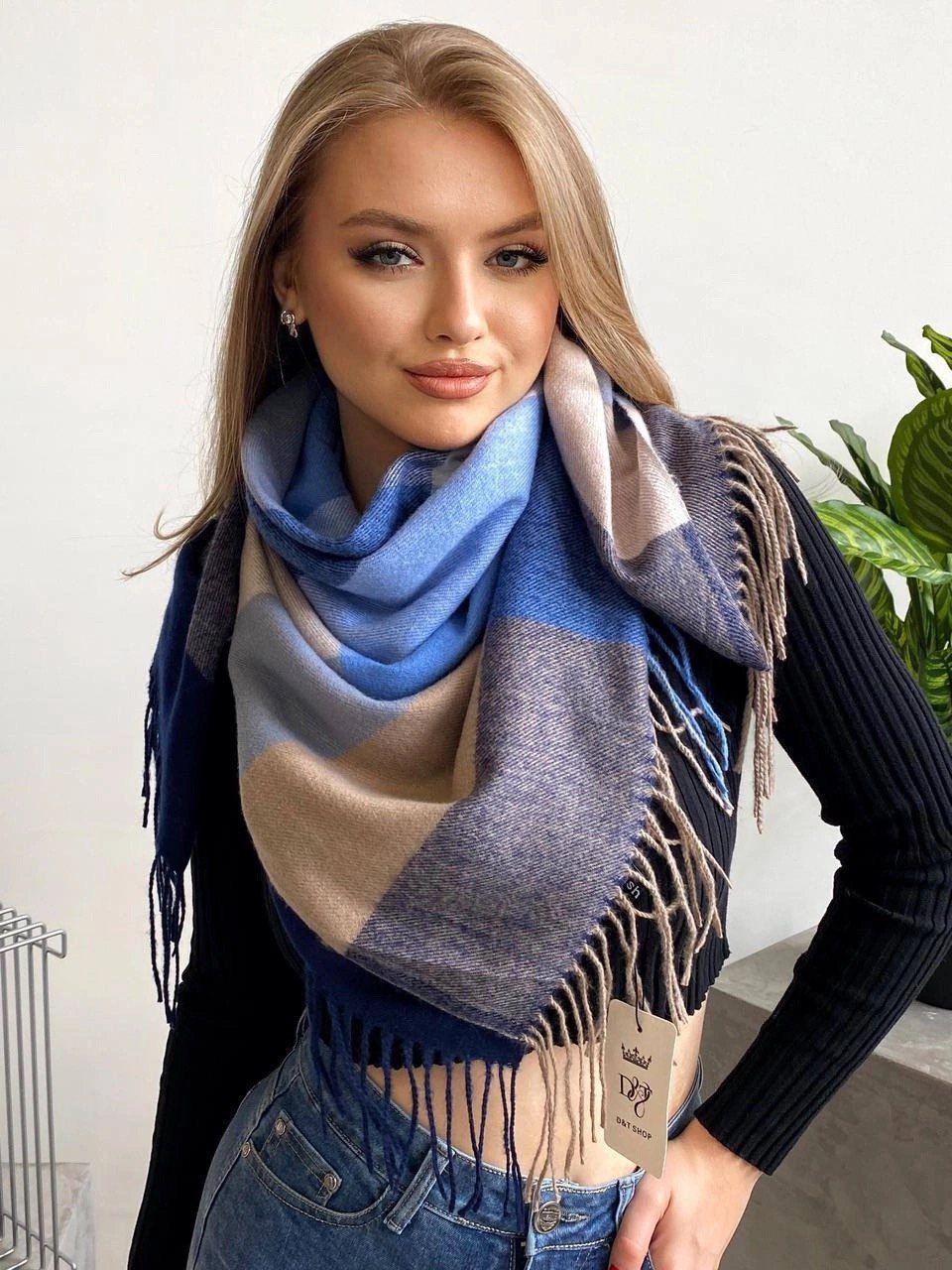 Теплый платок из кашемира — стильный аксессуар для вашего неотразимого образа. Размер изделия составляет 100*100, что позволяет использовать его как шарф или головной убор.