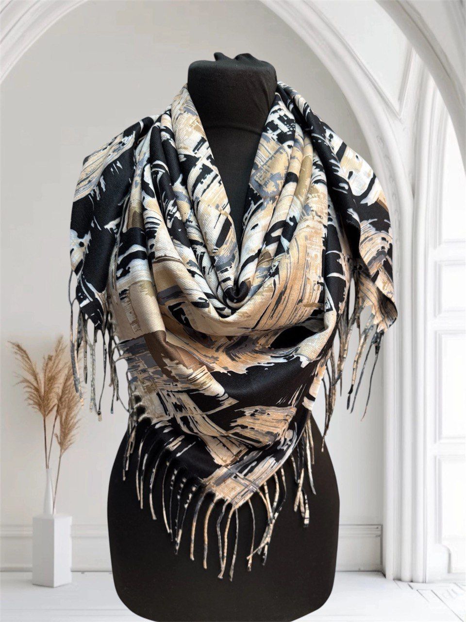 Теплый платок с рисунком из кашемира — стильный аксессуар для вашего неотразимого образа. Размер изделия составляет 100*100, что позволяет использовать его как шарф или головной убор.