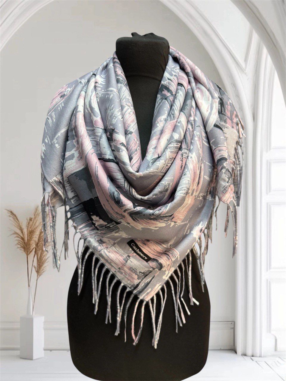 Теплый платок с рисунком из кашемира — стильный аксессуар для вашего неотразимого образа. Размер изделия составляет 100*100, что позволяет использовать его как шарф или головной убор.