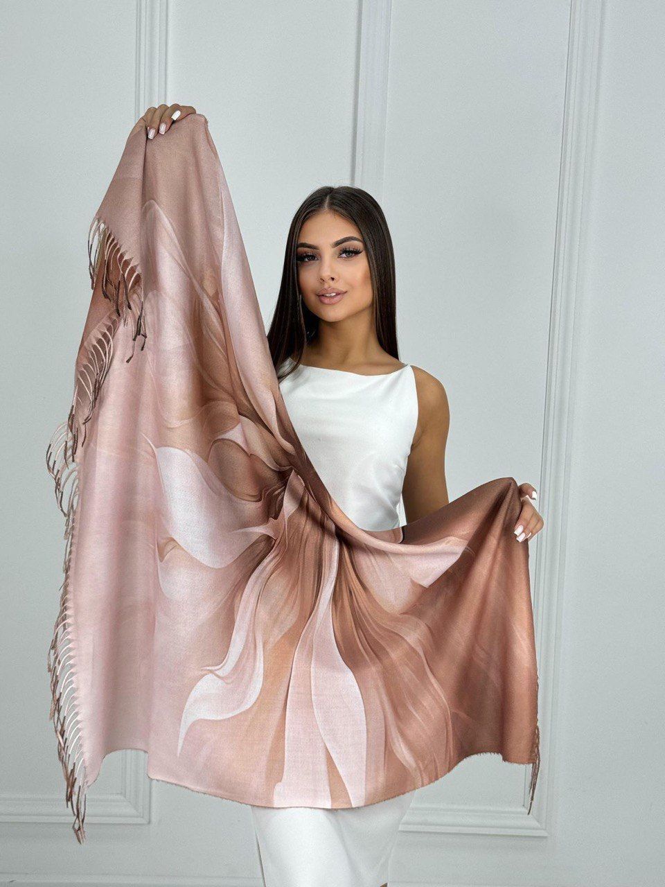 Двусторонний платок из кашемира с рисунком — стильный аксессуар для вашего неотразимого образа. Размер изделия составляет 100*100, что позволяет использовать его как шарф или головной убор.