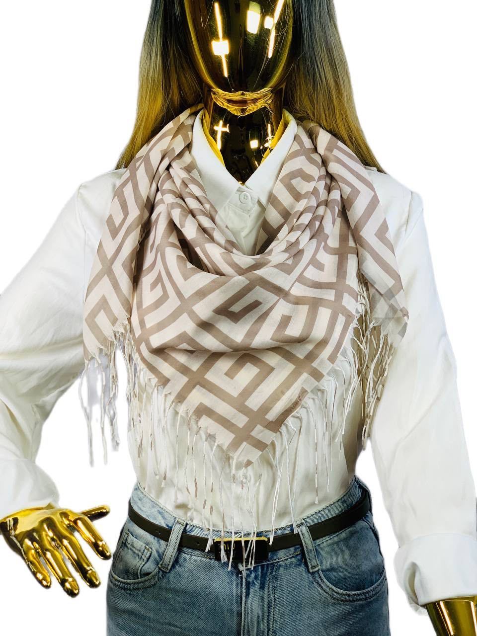 Платок из хлопка — стильный аксессуар для вашего неотразимого образа. Размер изделия составляет 100*100, что позволяет использовать его как шарф или головной убор.