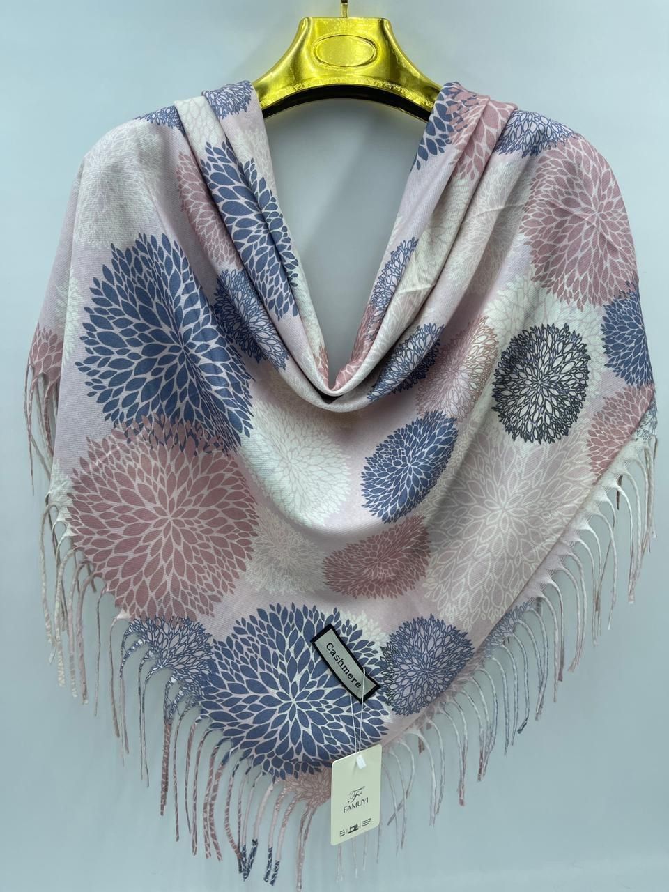 Теплый платок из кашемира с оригинальным рисунком — стильный аксессуар для вашего неотразимого образа. Размер изделия составляет 100*100, что позволяет использовать его как шарф или головной убор.
