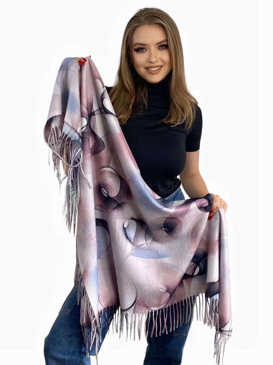 Платок из кашемира с оригинальным рисунком — стильный аксессуар для вашего неотразимого образа. Размер изделия составляет 110*110, что позволяет использовать его как шарф или головной убор.