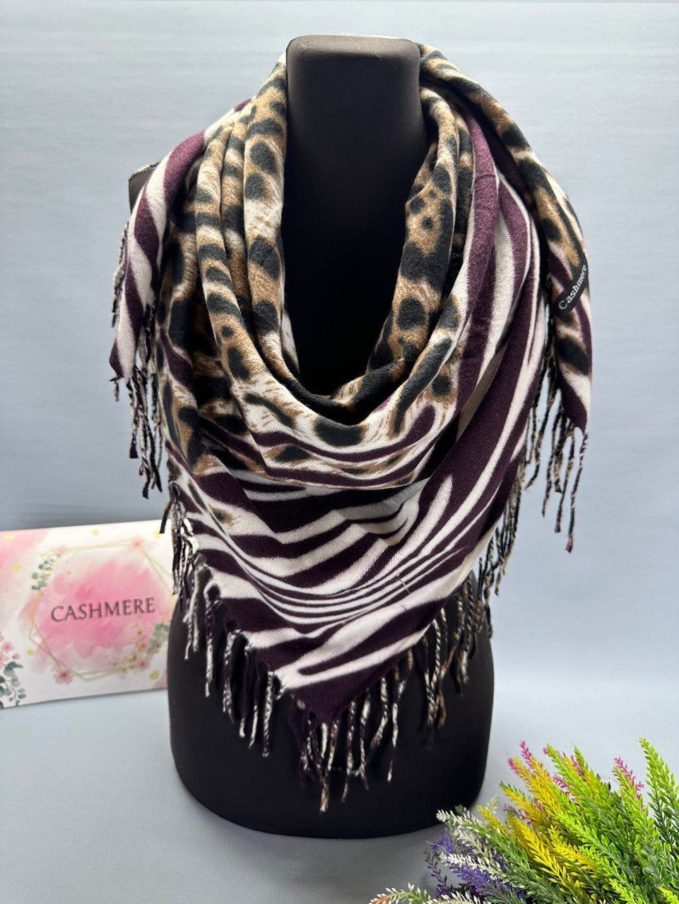 Теплый платок из кашемира — стильный аксессуар для вашего неотразимого образа. Размер изделия составляет 110*110, что позволяет использовать его как шарф или головной убор.