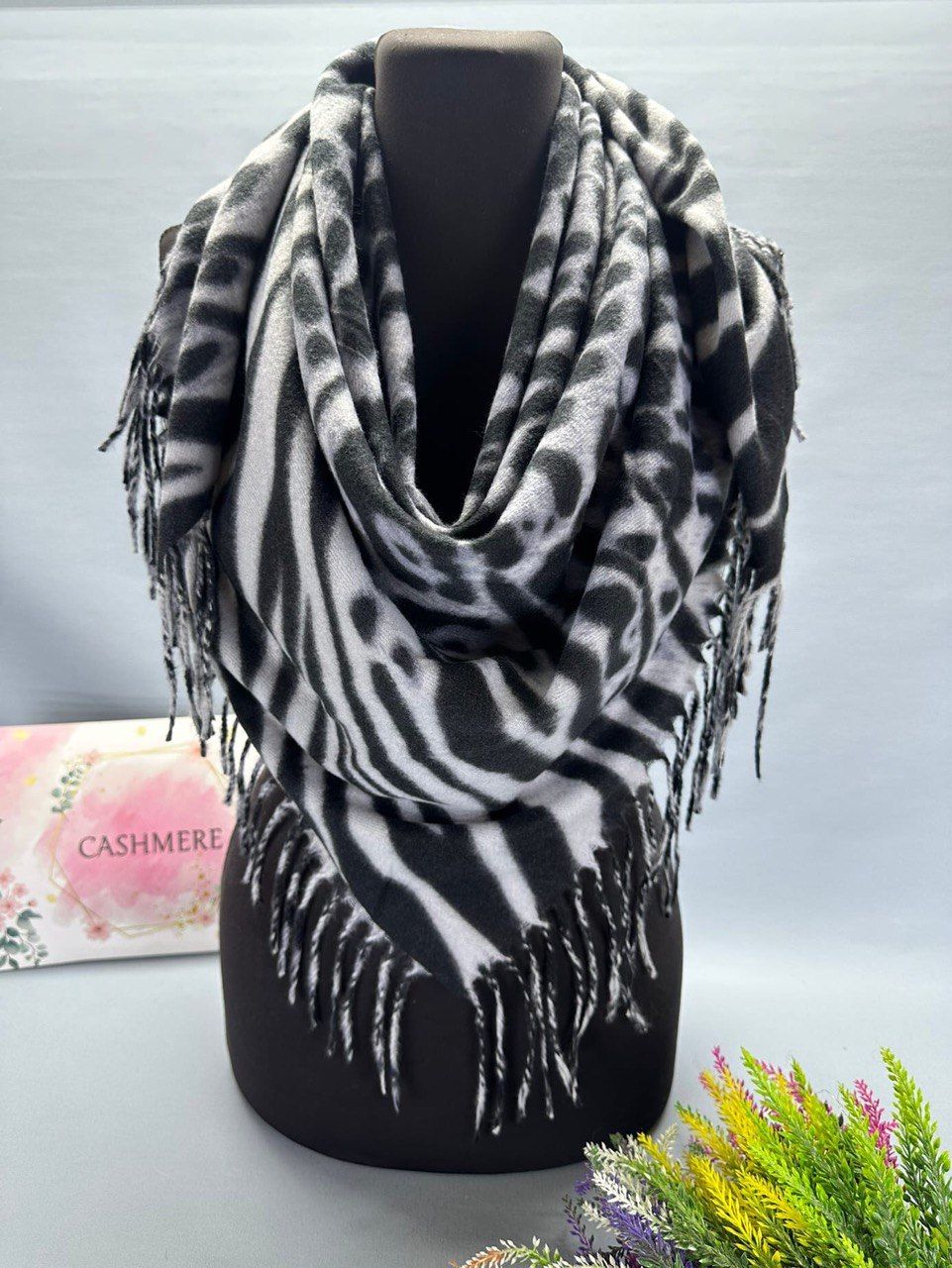 Теплый платок из кашемира — стильный аксессуар для вашего неотразимого образа. Размер изделия составляет 110*110, что позволяет использовать его как шарф или головной убор.