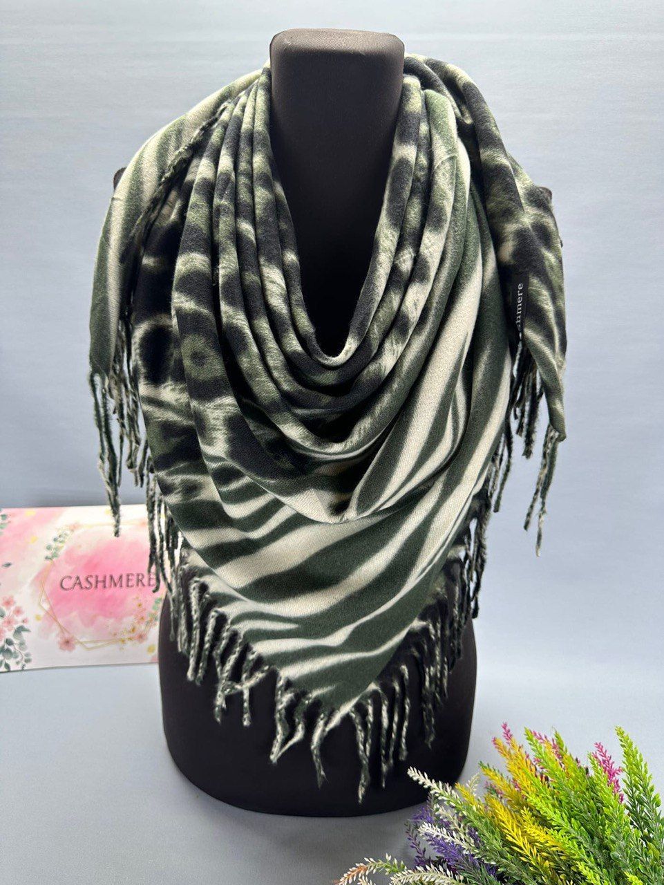 Теплый платок из кашемира — стильный аксессуар для вашего неотразимого образа. Размер изделия составляет 110*110, что позволяет использовать его как шарф или головной убор.