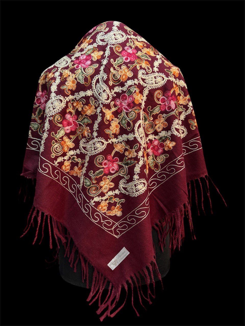 Теплый платок из кашемира с рисунком — стильный аксессуар для вашего неотразимого образа. Размер изделия составляет 120*120, что позволяет использовать его как шарф или головной убор.
