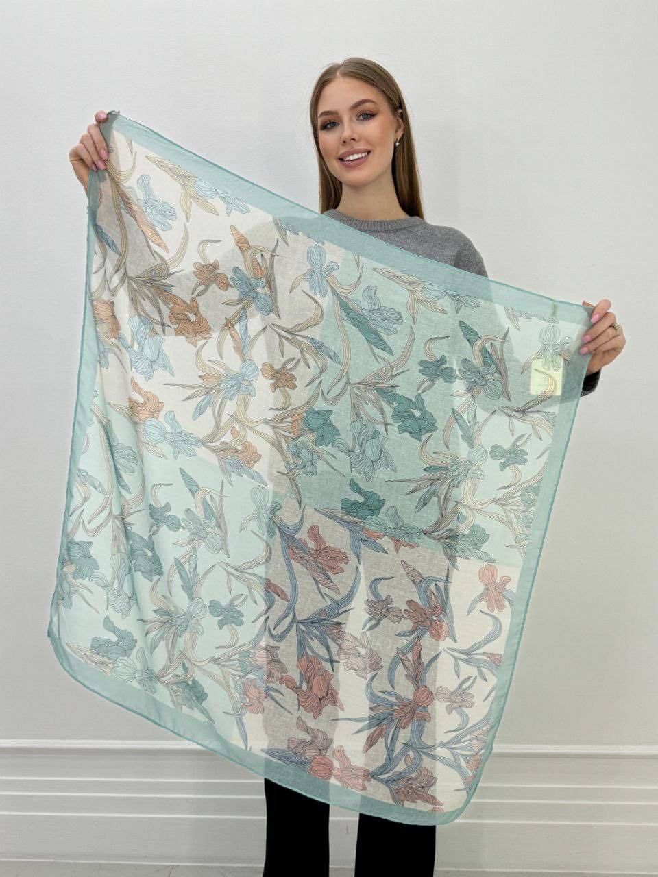 Хлопковый очаровательный платок — стильный аксессуар для вашего неотразимого образа. Размер изделия составляет 90*90, что позволяет использовать его как шарф или головной убор.