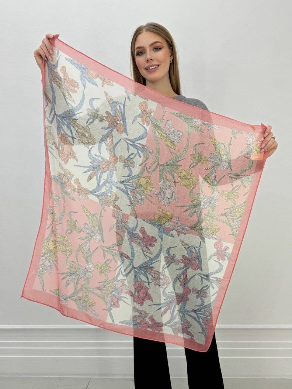 Хлопковый очаровательный платок — стильный аксессуар для вашего неотразимого образа. Размер изделия составляет 90*90, что позволяет использовать его как шарф или головной убор.