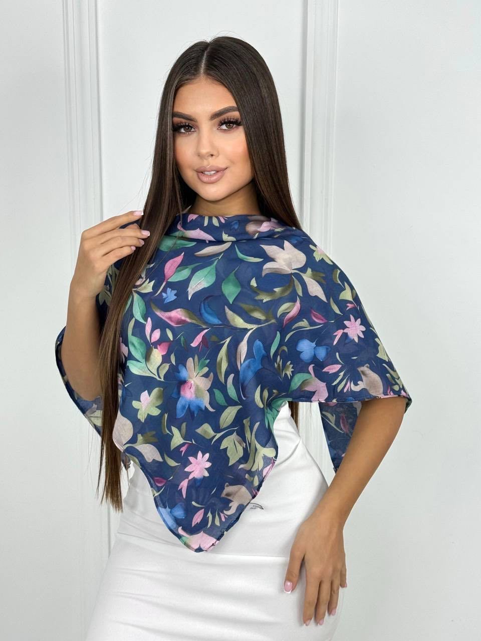 Хлопковый нежный платок — стильный аксессуар для вашего неотразимого образа. Размер изделия составляет 90*90, что позволяет использовать его как шарф или головной убор.