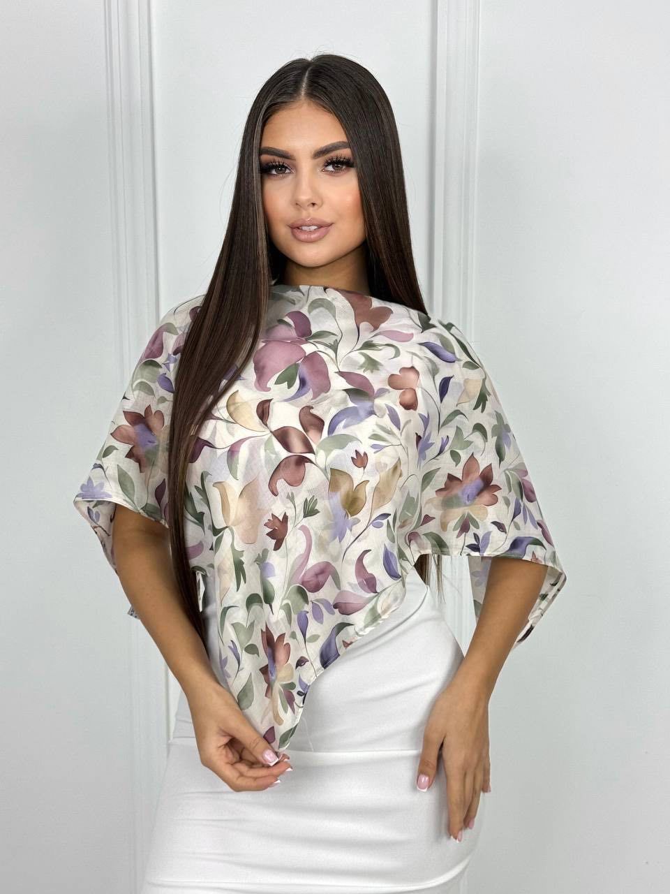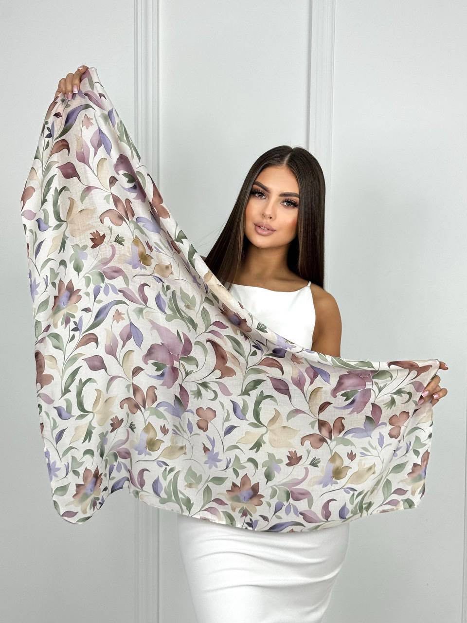 Хлопковый нежный платок — стильный аксессуар для вашего неотразимого образа. Размер изделия составляет 90*90, что позволяет использовать его как шарф или головной убор.