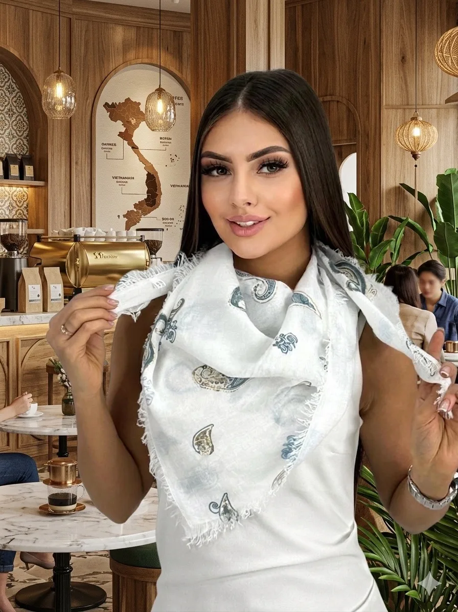Хлопковый нежный платок — стильный аксессуар для вашего неотразимого образа. Размер изделия составляет 90*90, что позволяет использовать его как шарф или головной убор.