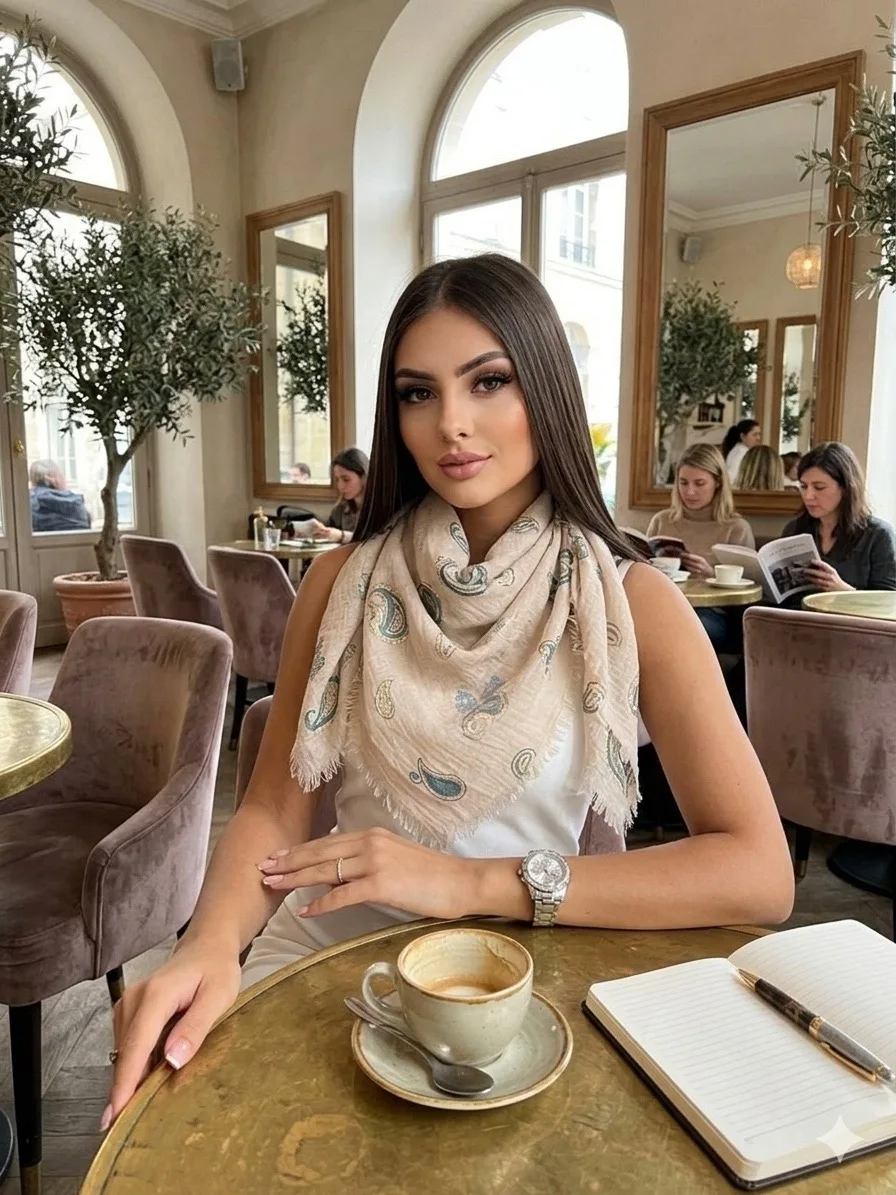 Хлопковый нежный платок — стильный аксессуар для вашего неотразимого образа. Размер изделия составляет 90*90, что позволяет использовать его как шарф или головной убор.
