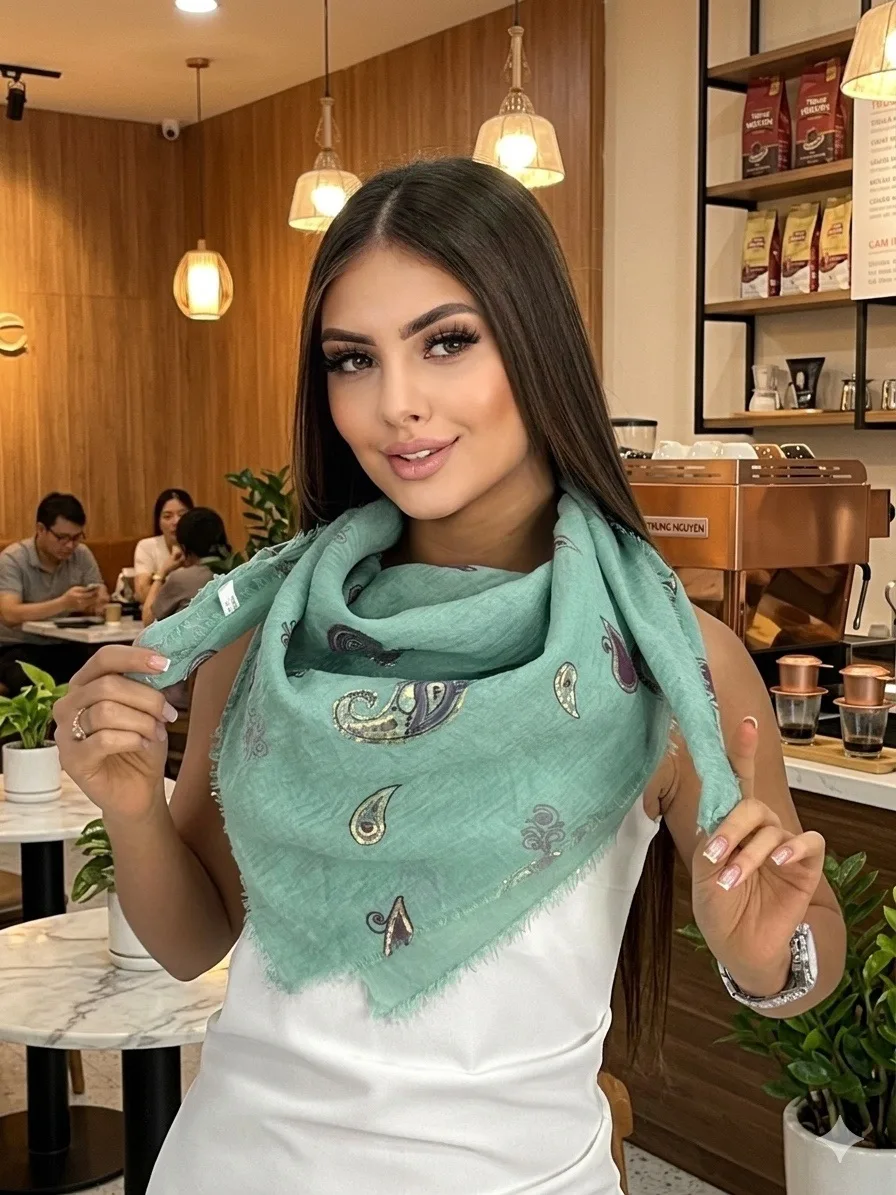 Хлопковый нежный платок — стильный аксессуар для вашего неотразимого образа. Размер изделия составляет 90*90, что позволяет использовать его как шарф или головной убор.