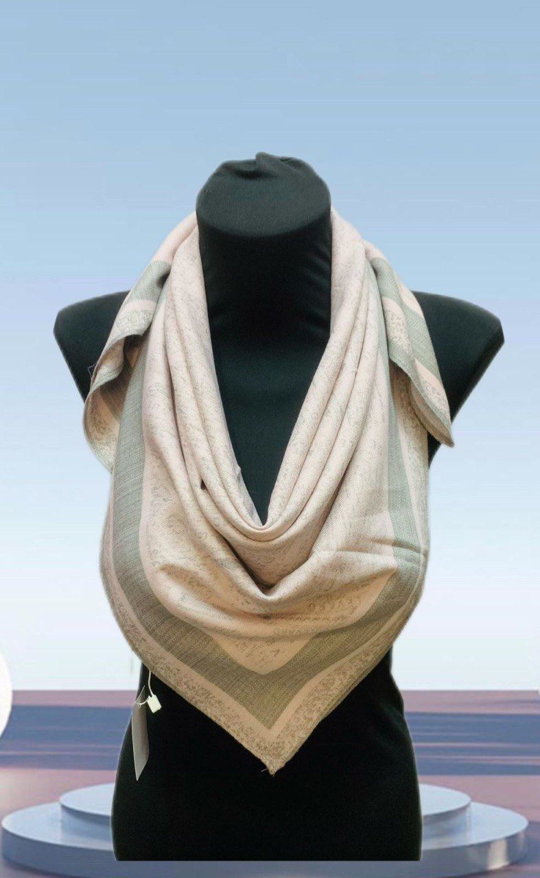 Платок из шерсти с рисунком — стильный аксессуар для вашего неотразимого образа. Размер изделия составляет 90*90, что позволяет использовать его как шарф или головной убор.