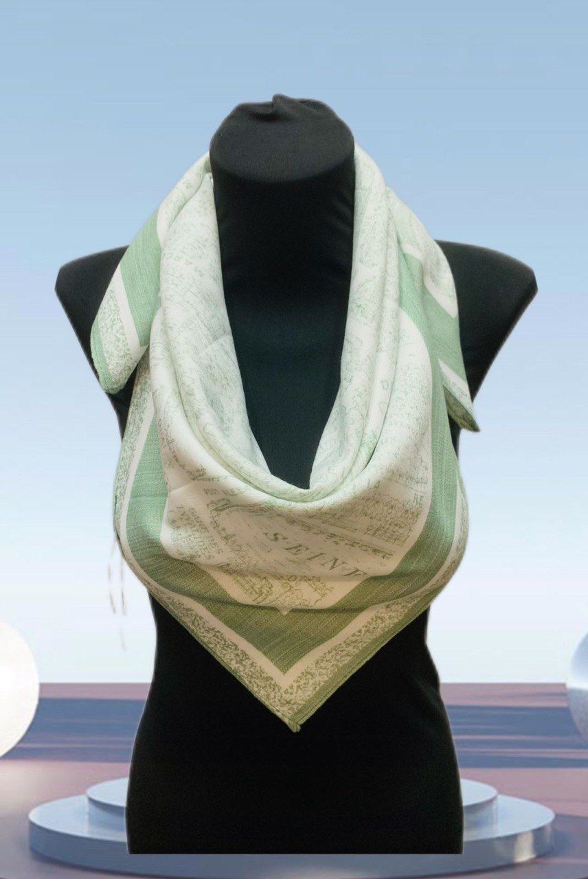 Платок из шерсти с рисунком — стильный аксессуар для вашего неотразимого образа. Размер изделия составляет 90*90, что позволяет использовать его как шарф или головной убор.