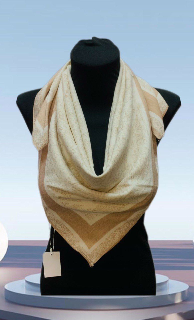 Платок из шерсти с рисунком — стильный аксессуар для вашего неотразимого образа. Размер изделия составляет 90*90, что позволяет использовать его как шарф или головной убор.