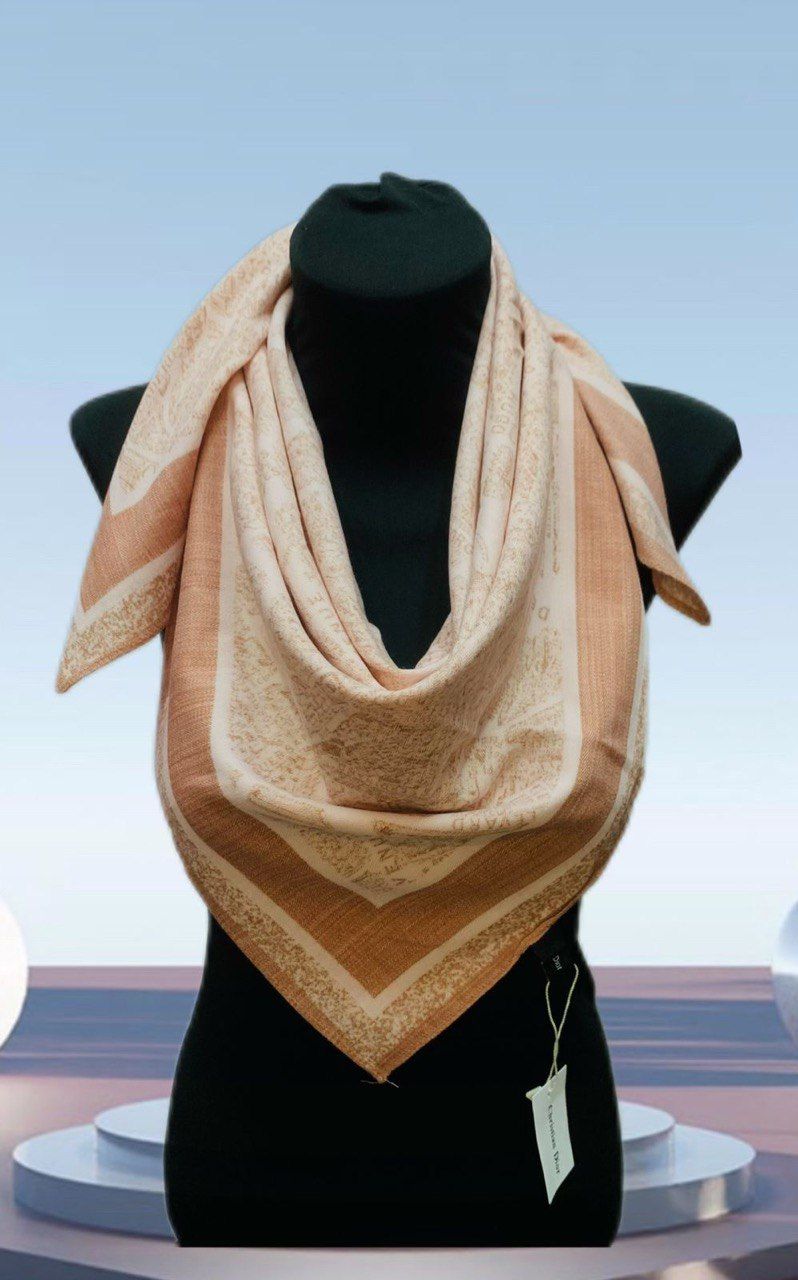 Платок из шерсти с рисунком — стильный аксессуар для вашего неотразимого образа. Размер изделия составляет 90*90, что позволяет использовать его как шарф или головной убор.