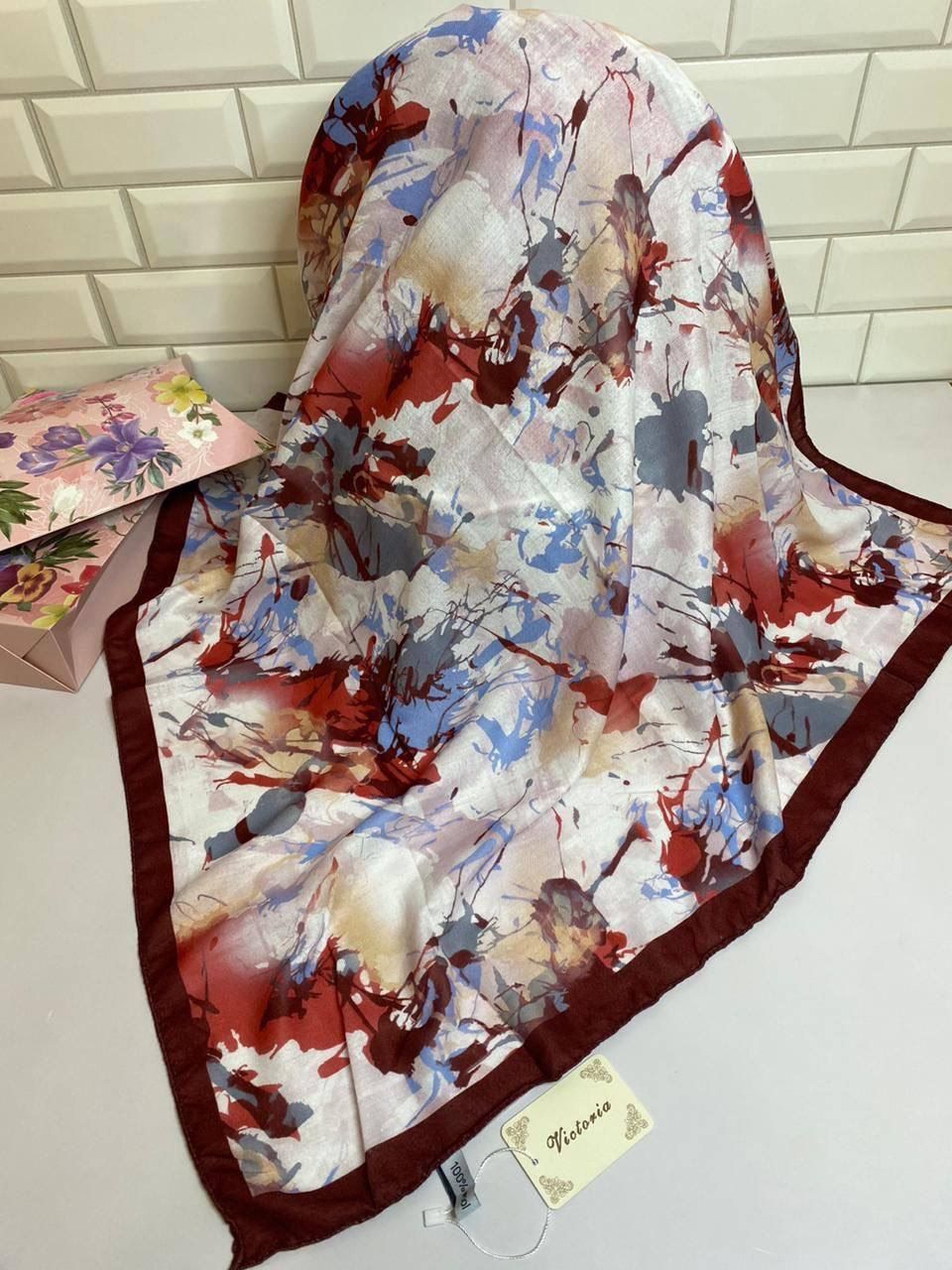 Платок из тонкой шерсти с рисунком — стильный аксессуар для вашего неотразимого образа. Размер изделия составляет 90*90, что позволяет использовать его как шарф или головной убор.
