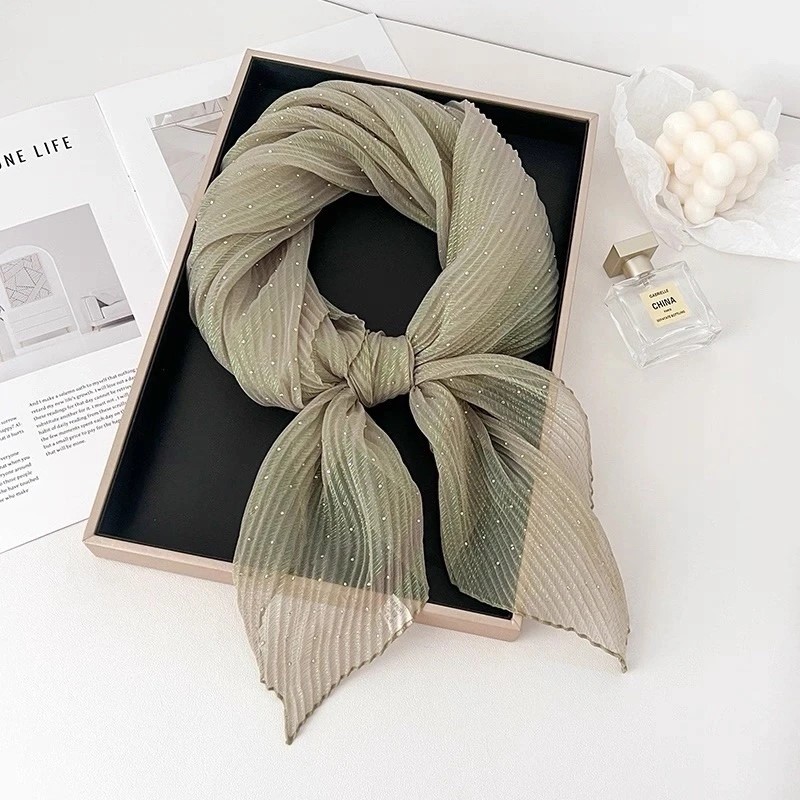 Нежный платок со стразами из полиэстера — стильный аксессуар для вашего неотразимого образа. Размер изделия составляет 85*85 см.
