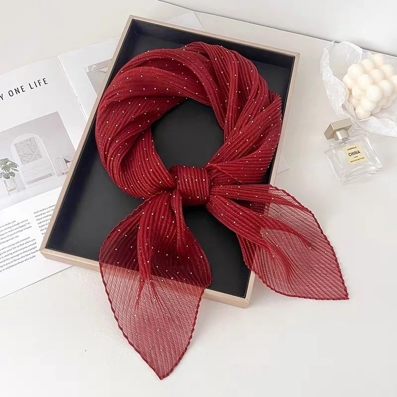 Нежный платок со стразами из полиэстера — стильный аксессуар для вашего неотразимого образа. Размер изделия составляет 85*85 см.