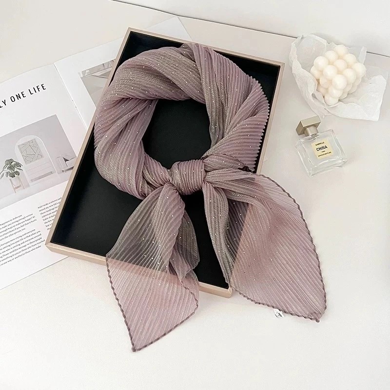 Нежный платок со стразами из полиэстера — стильный аксессуар для вашего неотразимого образа. Размер изделия составляет 85*85 см.