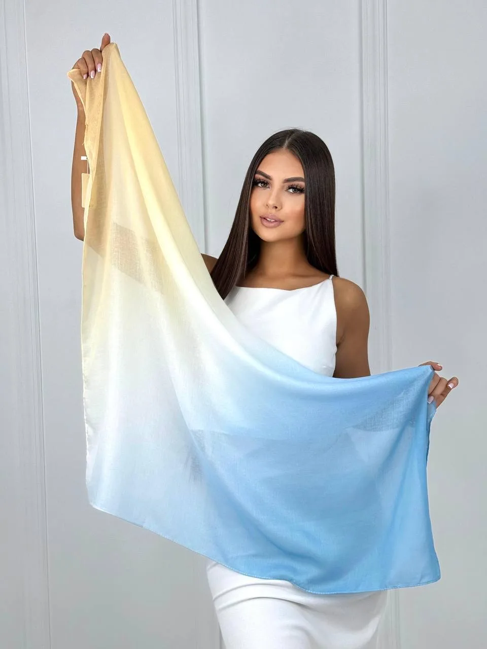 Платок из хлопка и бамбука — стильный аксессуар для вашего неотразимого образа. Размер изделия составляет 90*90, что позволяет использовать его как шарф или головной убор.