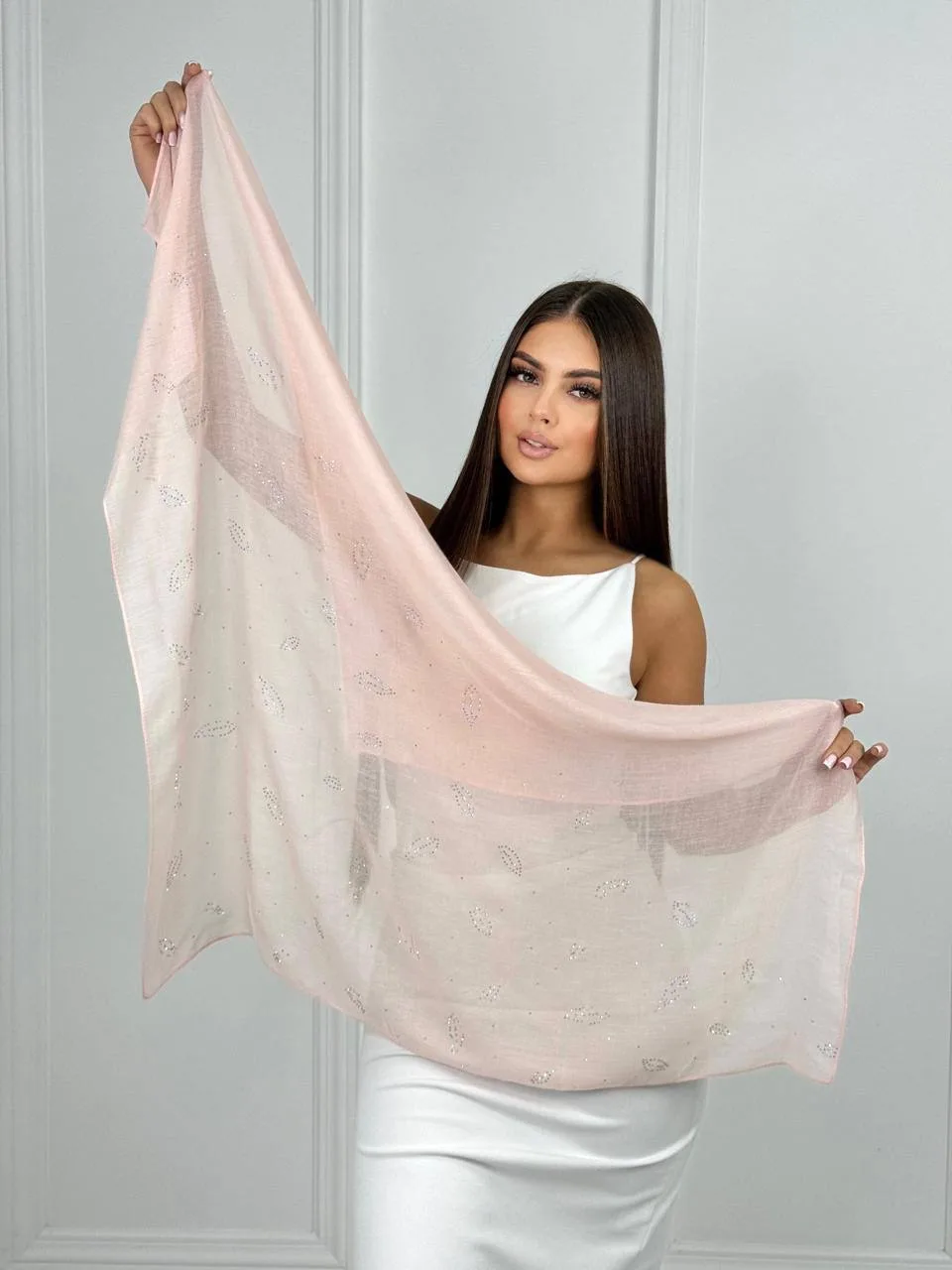 Нежный платок из хлопка со стразами — стильный аксессуар для вашего неотразимого образа и похода в храм. Размер изделия составляет 90*90, что позволяет использовать его как шарф или головной убор.